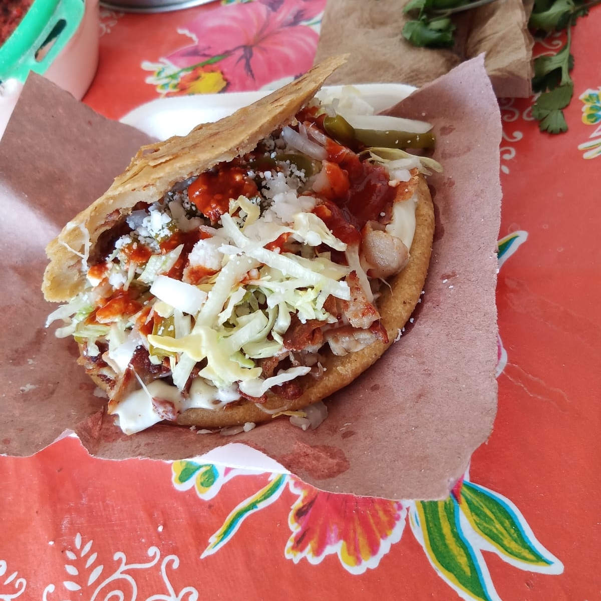 Súper rico, fui porque me recomendaron y no se equivocaron, te atienden rápido a pesar de que siempre hay mucha gente, muy económico y te vas demasiado satisfecho ⭐⭐⭐⭐⭐ en mi opinión personal lo que les puedo recomendar es la gordita de suadero o bistec y el agua de horchata y ya si de plano tienes mucha hambre el huarache, pero mi compañero no se lo termino a pesar de que come mucho porque está enorme en general todo está muy rico y barato